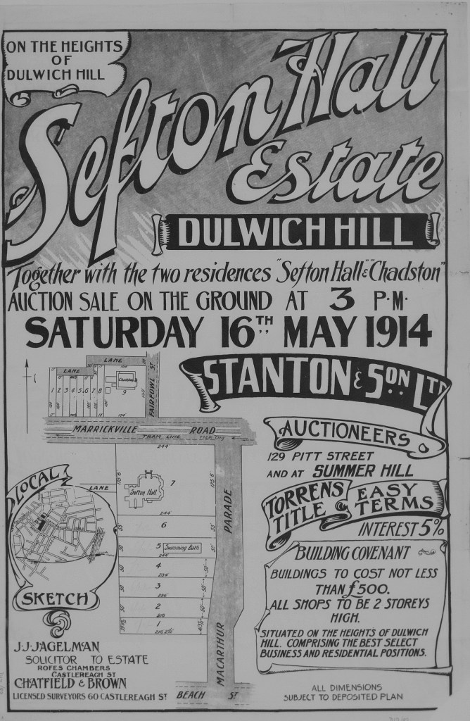 We found that 11 Macarthur Parade, which is now for sale as a potential development site, was the home of John Thomas Ness (1871-1947), who was an influential activist, businessman and politician (including three terms as Mayor of Marrickville Council). Ness Avenue in south Dulwich Hill was no doubt named after him.