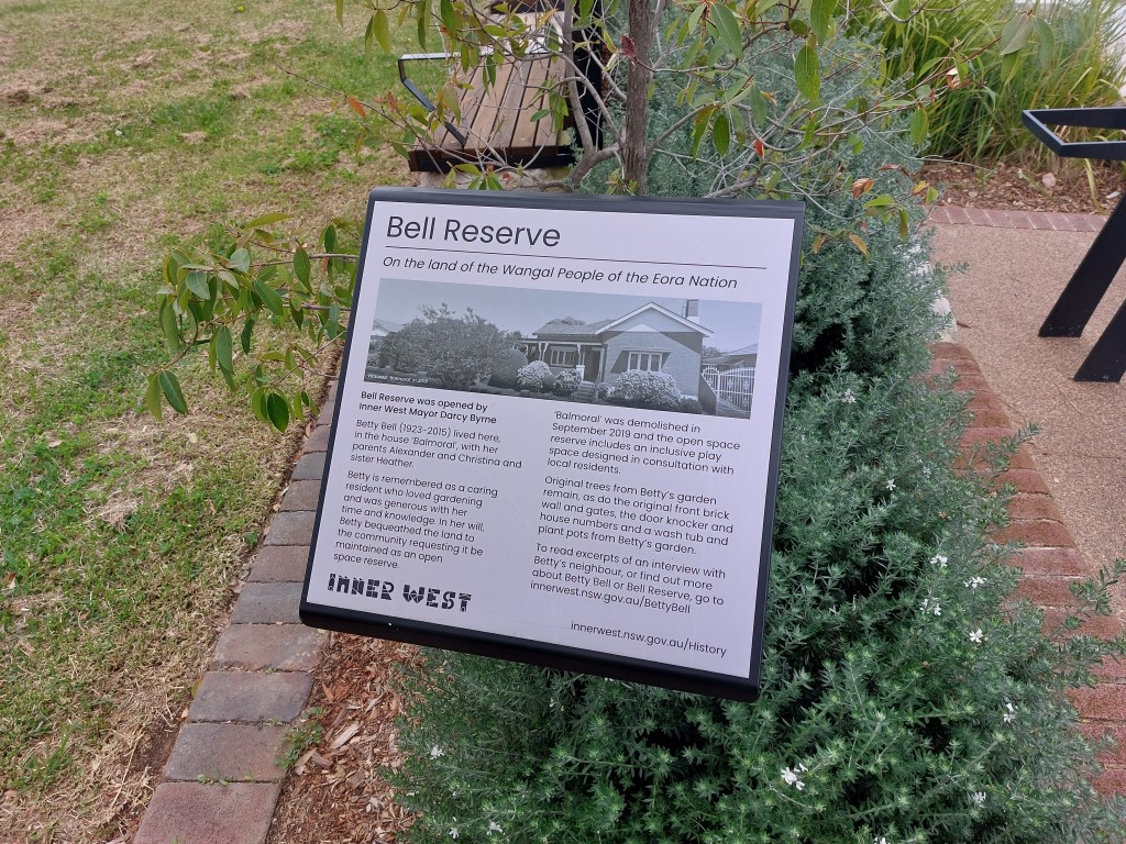 One such feature is the Bell Reserve, off Croydon Rd. This little public reserve was the former home of long-time resident Betty Bell, who passed away in 2015. Betty bequeathed the home site to Inner West Council, on the condition it became a park (see photos below).