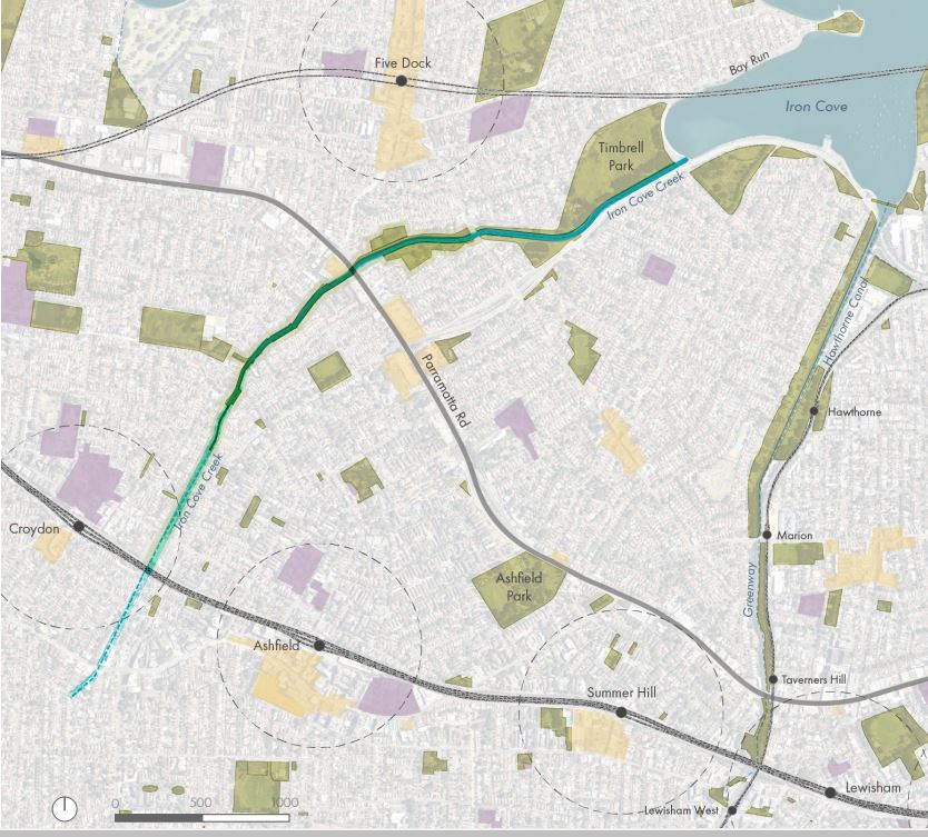 Inner West Council has commenced consultation on a draft masterplan for the Iron Cove Creek corridor, which runs for 3.5km between Ashfield/Croydon and Haberfield/Five Dock (the creek serves as the boundary between each of the above suburbs).