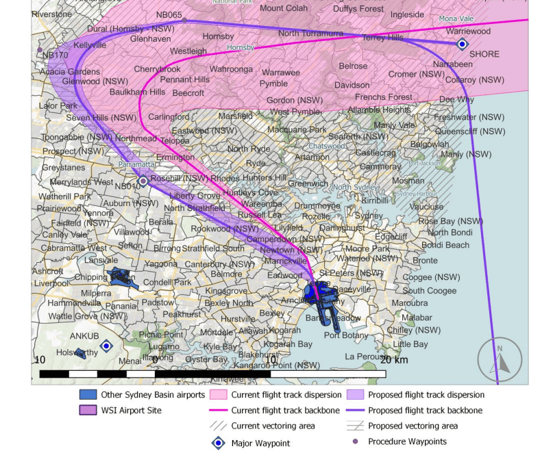 The environment impact statement (EIS) is attempting to explain changes to flight paths from Sydney Airport as a result of the introduction of Western Sydney International Airport into Sydney’s air space from 2026.