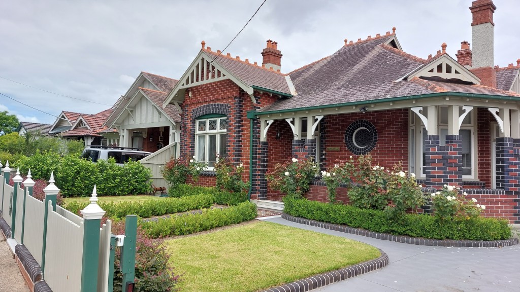 These controls have created the southern part of today’s Croydon, with streets lined with substantial Federation homes, of Queen Anne or Arts and Crafts styles, many with generous front or corner balconies, hedges and brick fences.
