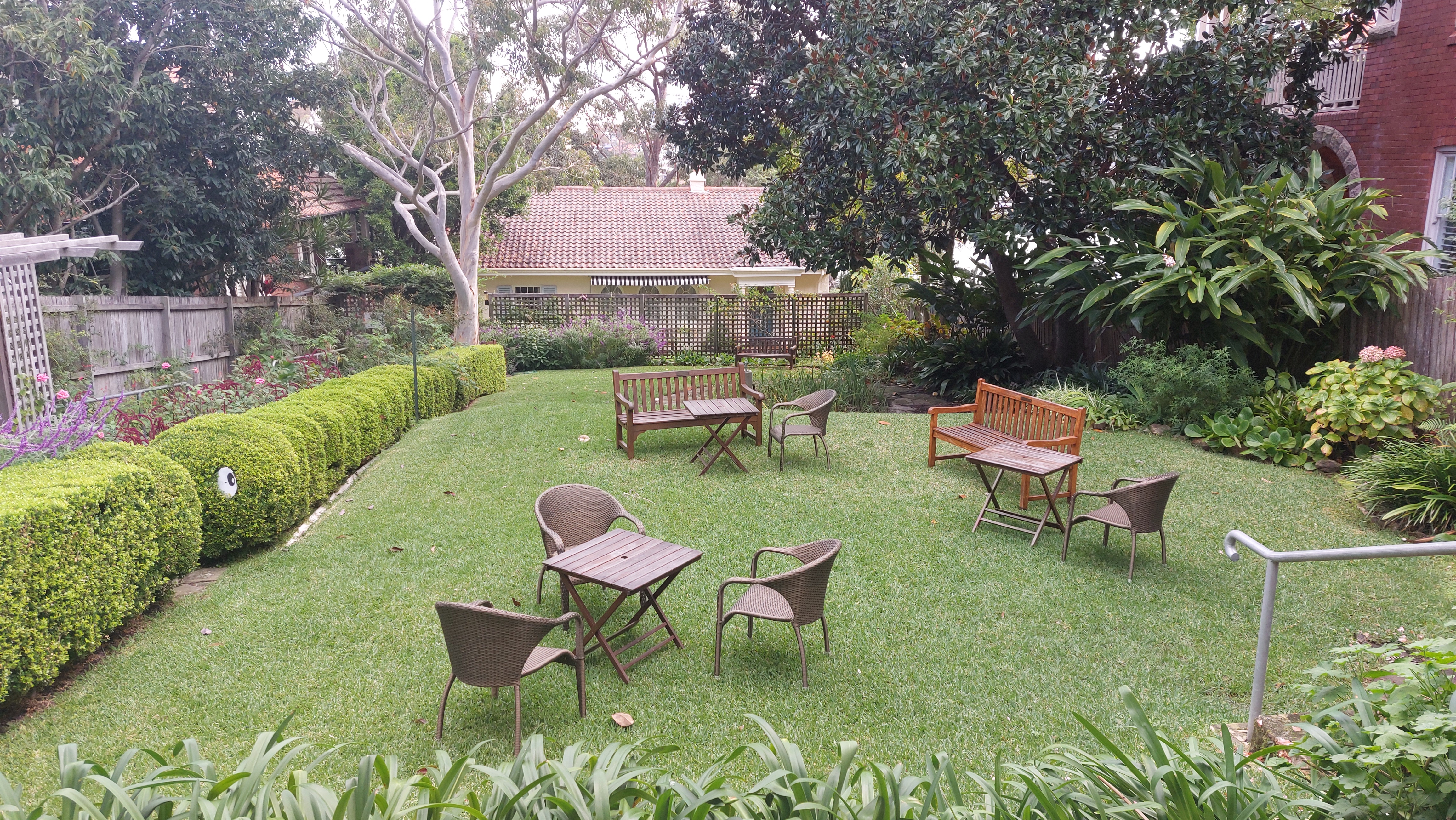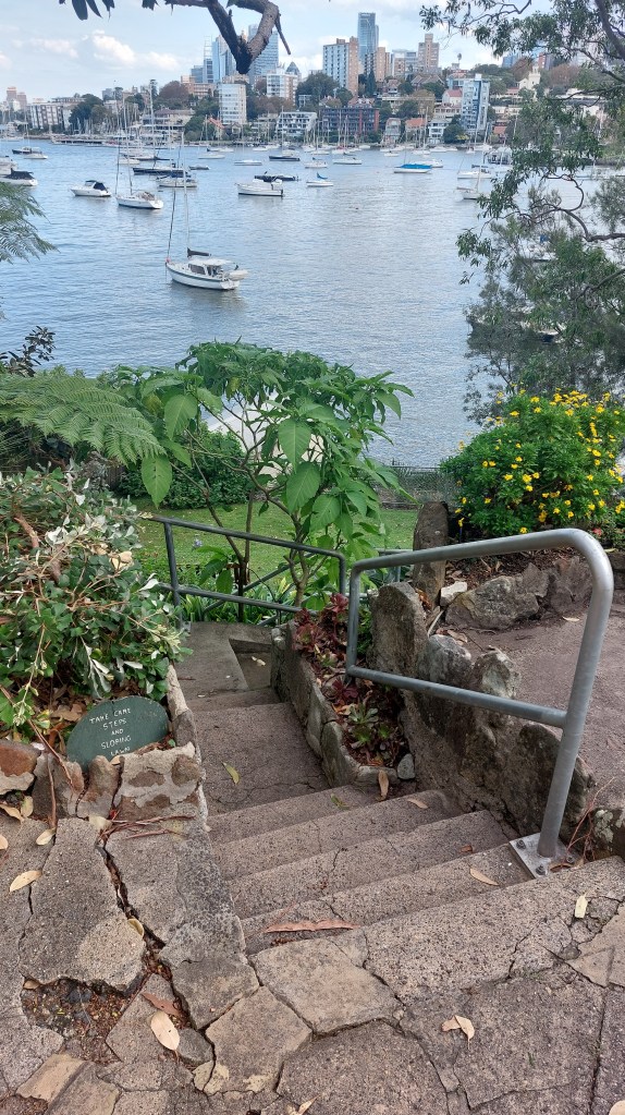 The sloping property was divided into four sections – a garage facing the street, a top garden, a home (which was constructed in 1925) and then a bottom garden running to the harbour’s edge.