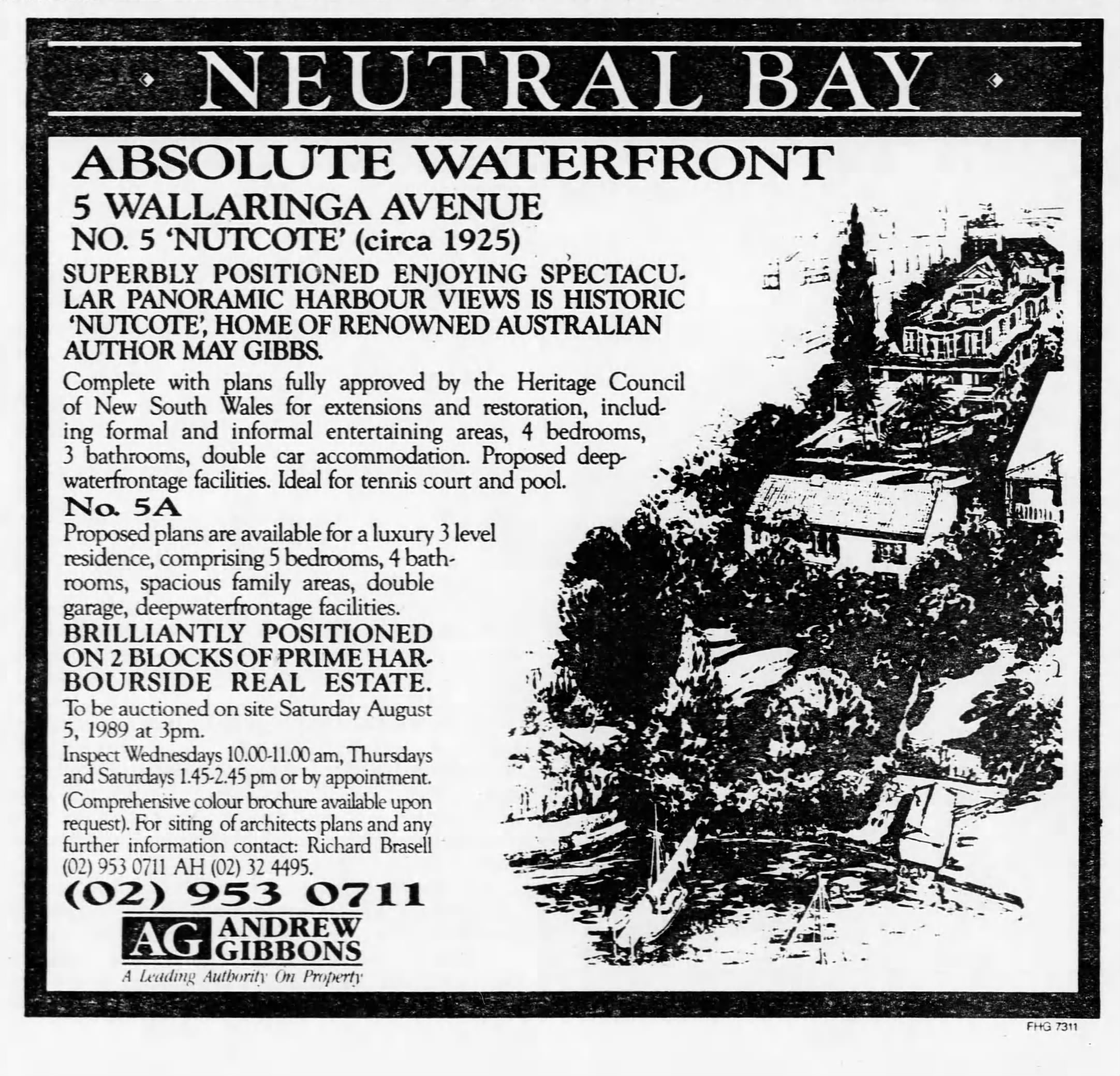 As this downturn began to grip, Nutcote was passed-in at auction in August 1989 and it was still on the market by November 1989.