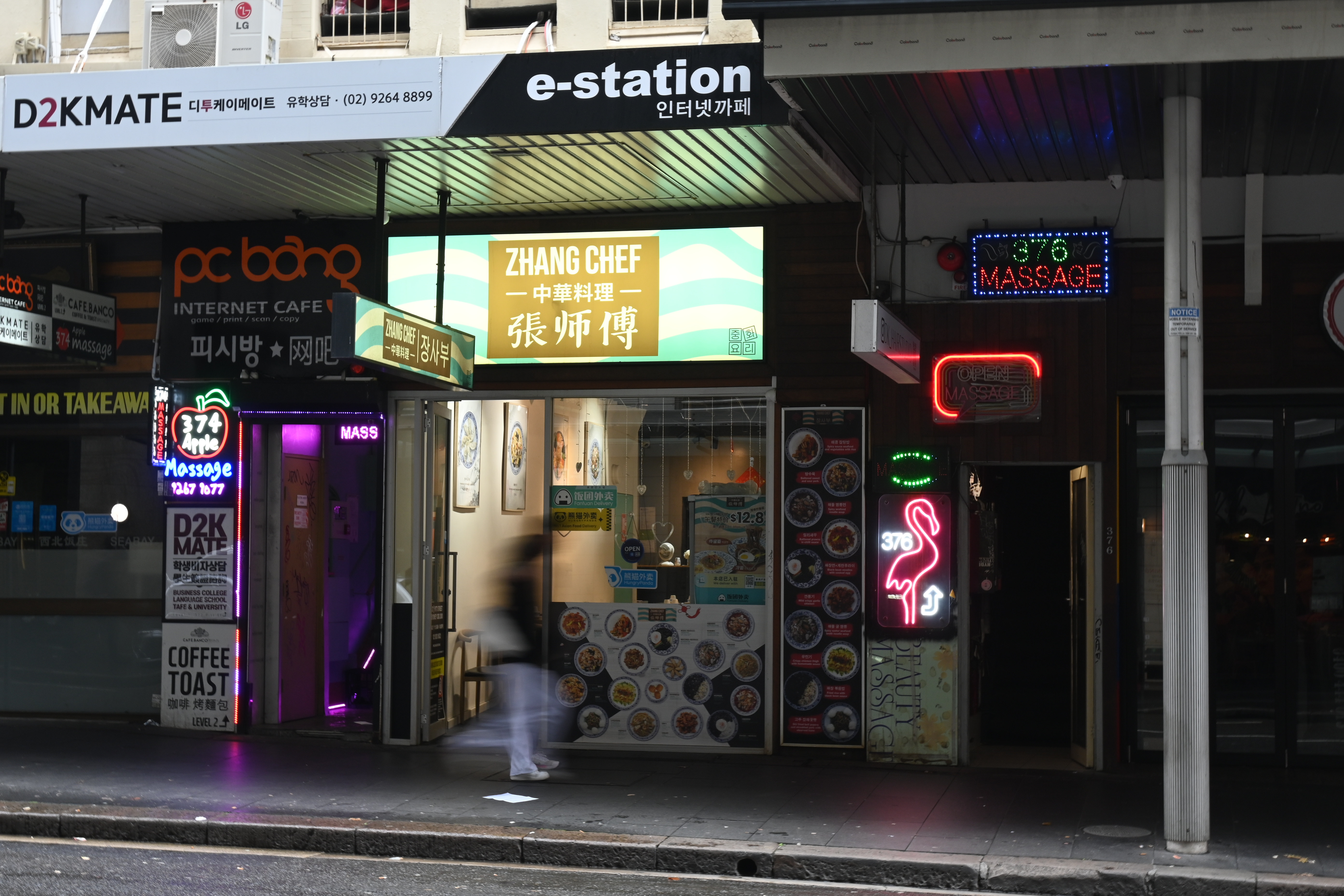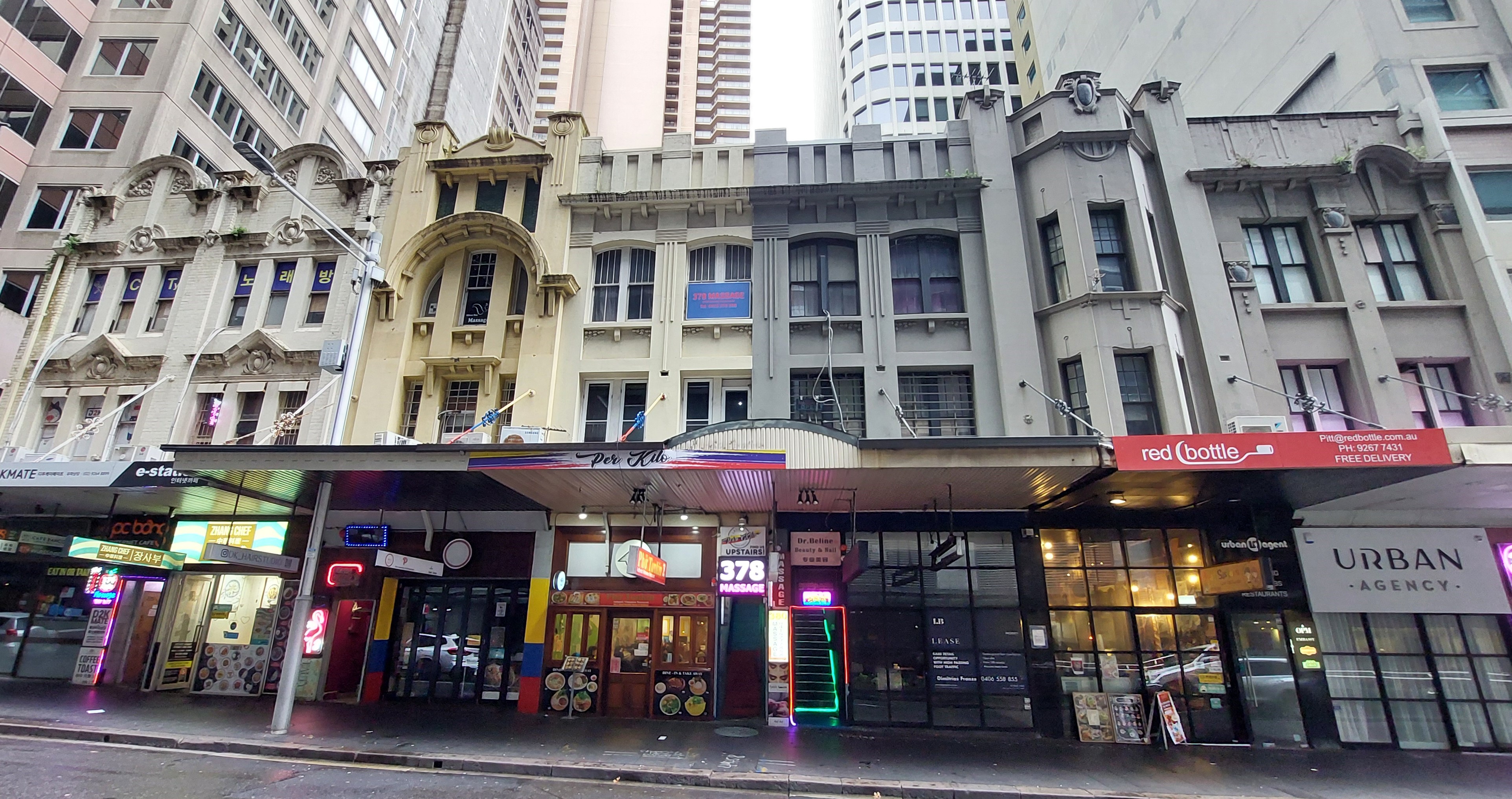At present, the strip contains Asian-themed restaurants and at least six massage parlours, which hide their upper floor secrets behind dimly-lit and narrow stair-cases.