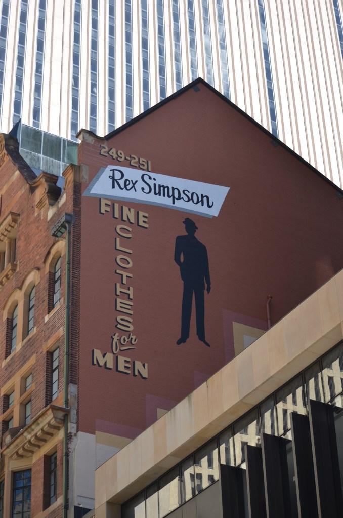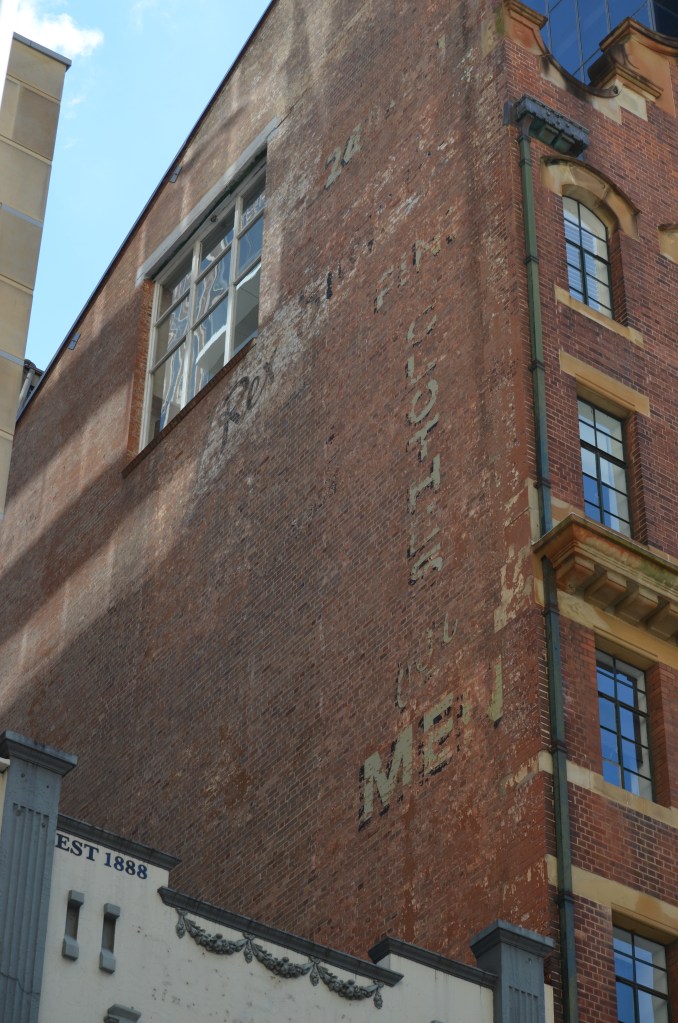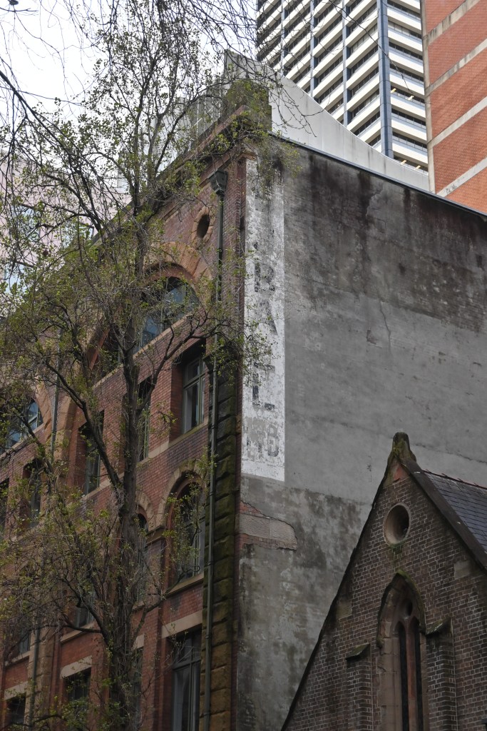 Although a narrow building, its northern and southern walls – and their two painted ghost signs – remain prominent in the Pitt St landscape, just south of Market St.