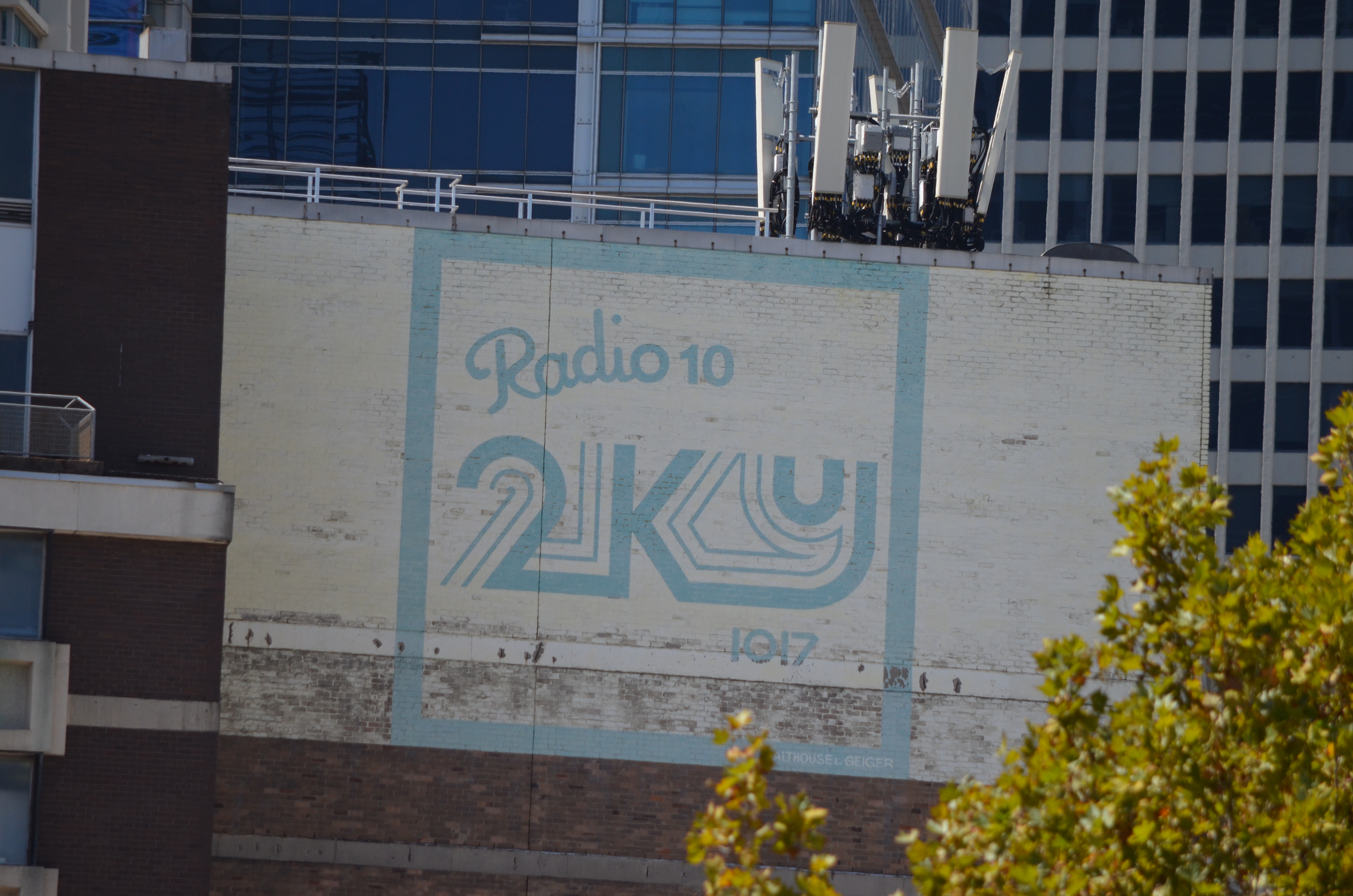 Despite this, a large 2KY sign is located on the rear of the Labour Council of NSW building at 377 Sussex St. This sign faces west and can be best seen from the southern end of Darling Harbour, near the entrance to the Chinese Garden of Friendship.