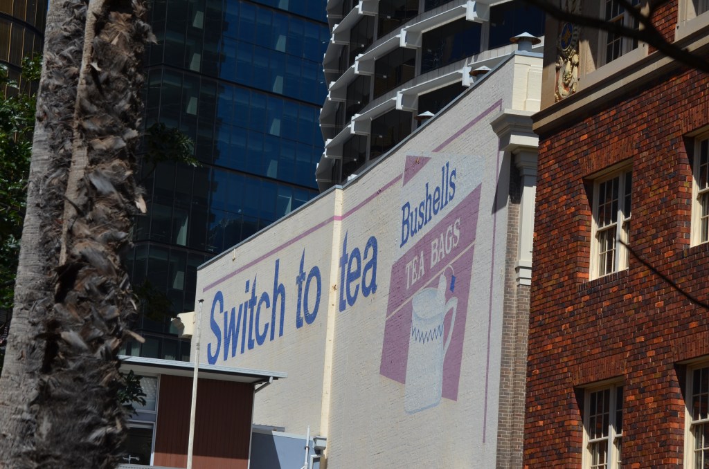 Motorists flashing south off the Sydney Harbour Bridge are able to catch a glimpse of a sign which reads “switch to tea”. This old-school Bushell’s Tea sign looks a little out of place, being on the edge of the city skyscraper zone.