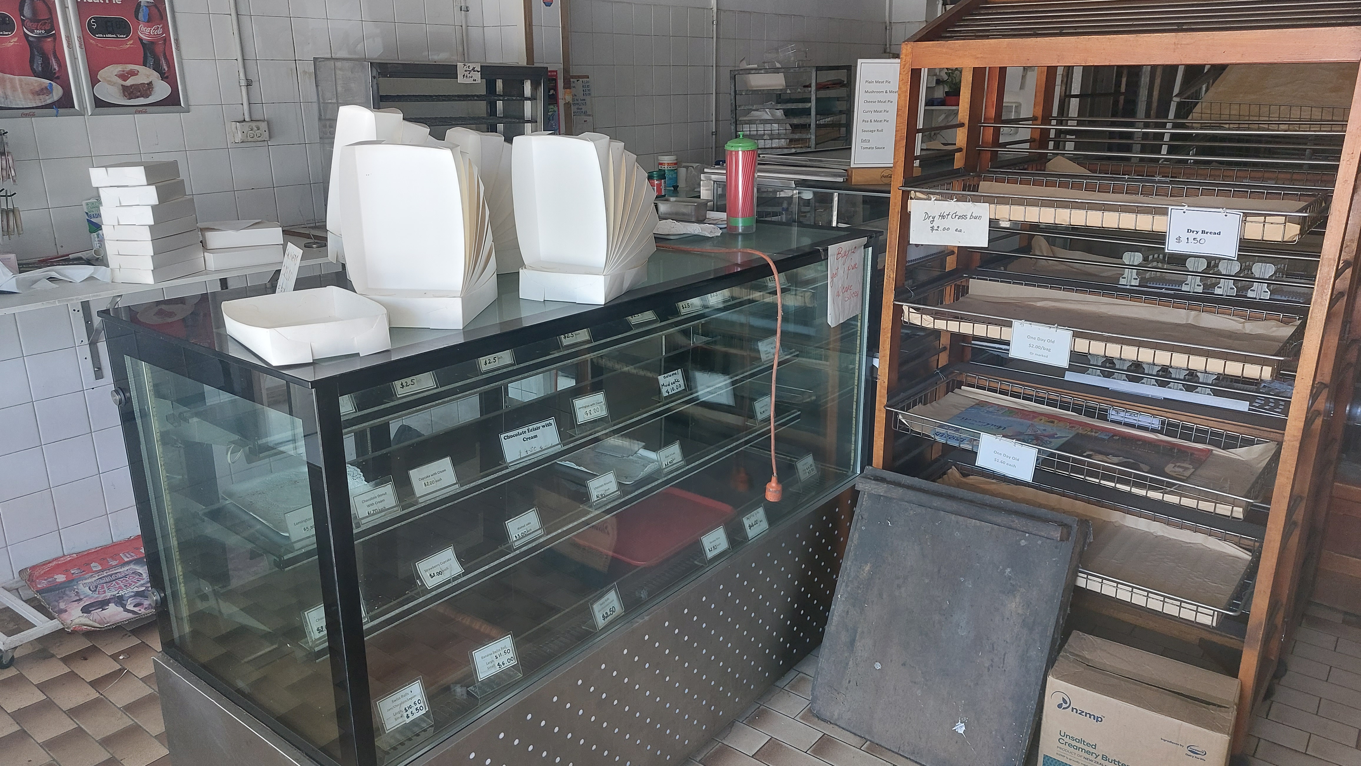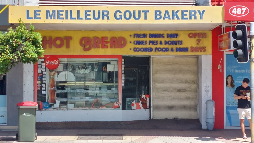 Rockdale in southern Sydney contains a cluster of ghost shops. One is a bakery which a local told me closed around five years ago. However, it still contains stand-up labels with prices for tasty treats, along with the serving counters and baking trays (chocolate eclairs with cream for $4.50 anyone?)