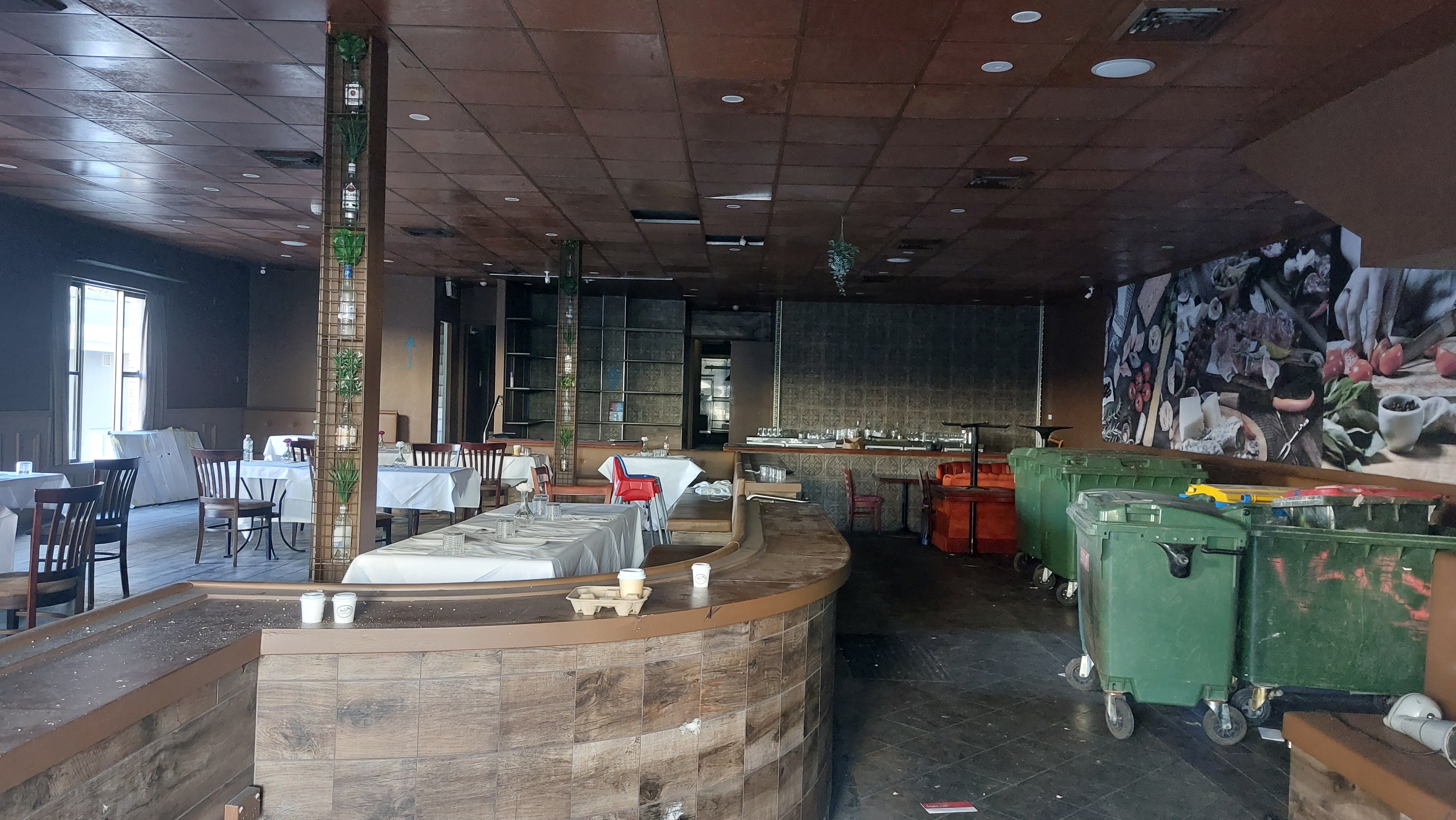 The twist is that many of these businesses are leaving their premises looking as though nothing has changed – which in part shows the rush of their exit. Price signs, glasses and cutlery and other fittings and tables have not been moved in, while the business has.