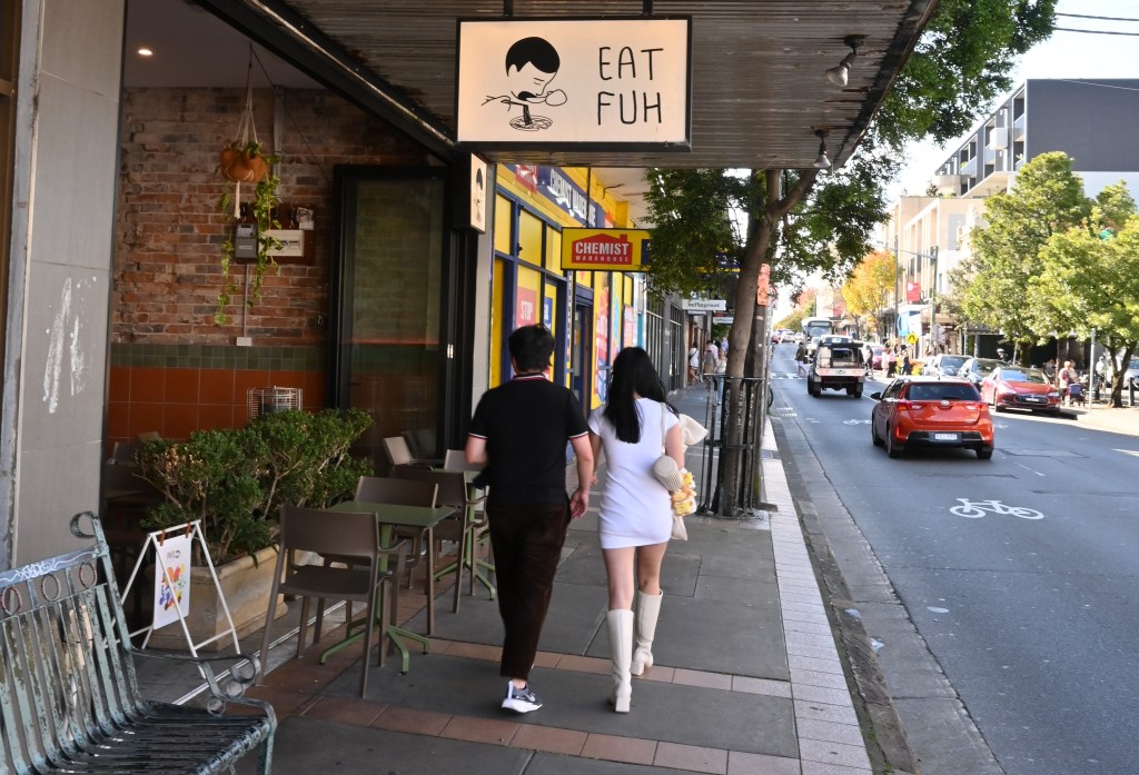 Space on Illawarra Rd’s cramped footpaths is at a premium, due to pedestrians scuttling to and from shops or restaurants, or diners taking up outdoor cafe seating.